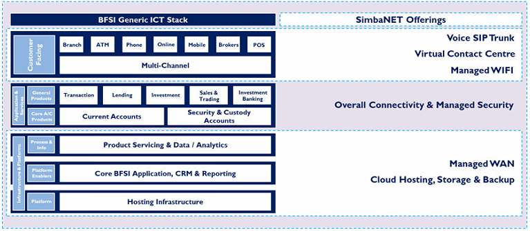 - Enabling secure and clean traffic for the financial sector by deploying security platforms like DDoS mitigation, Virtual Unified Threat Management and SOC as a Service In addition, we have constantly evolved by introducing new solutions for the sector such as Virtual Contact Centers, Private Cloud, Managed WIFI etc.; These solutions will not only help bringing down the operational costs but will also help in enhancing customer experience